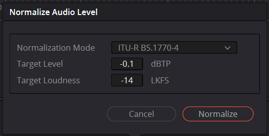 경로 : Audio > Normalize Audio Levels > ITU-R BS.1770-4 > LKFS