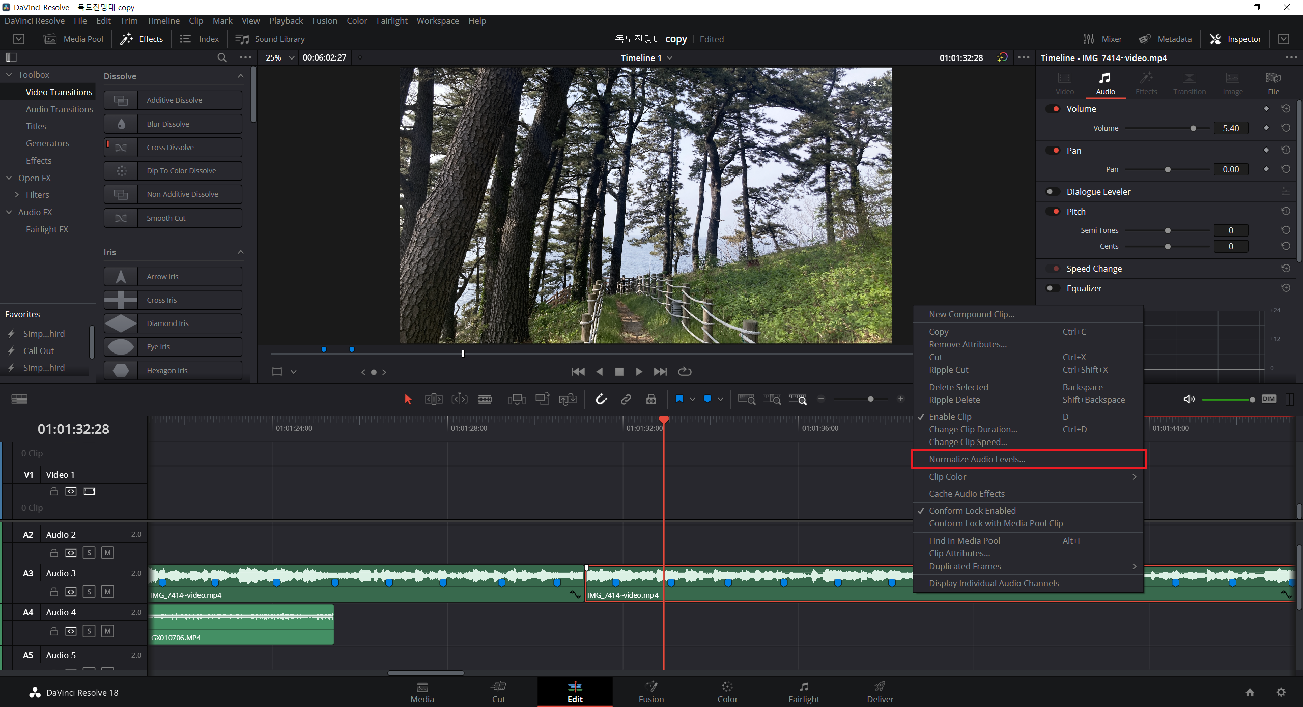 1. 오디오 음원 > 마우스 우측 클릭 > Normalize Audio Levels 클릭