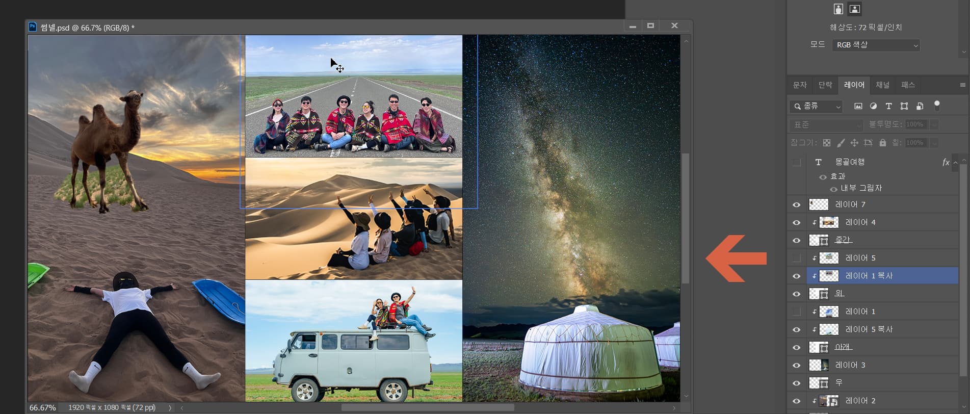 2. 레이어를 복사해서 화면에 배치 시킨다