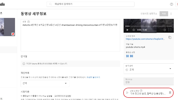쇼츠의 설명란과 댓글에 관련영상 링크를 클릭하지 못하게 막혀버렸다.