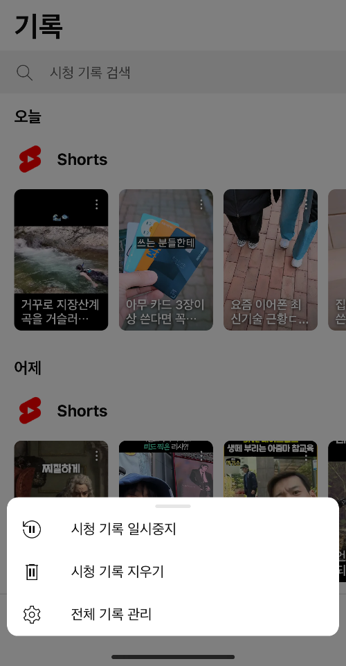 그럴때는 유튜브 내에서 시청기록을 지워보자!